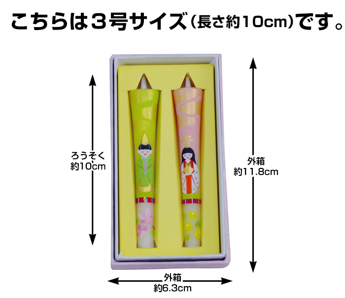 | 製品名: | 特別柄 3号 絵ろうそく 2本入 おひな様 |