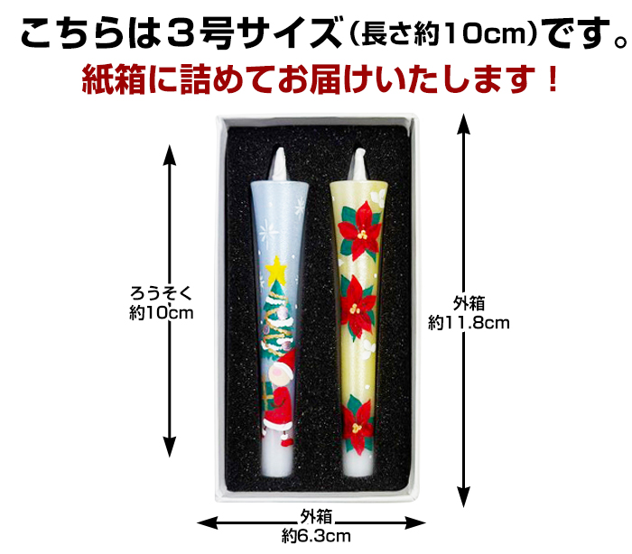 | 製品名: | 限定柄クリスマス・3号絵ろうそく2本入 【2024 クリスマス】 |