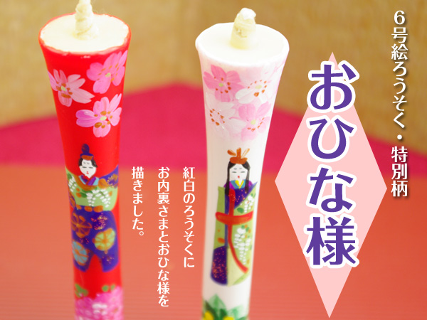| 製品名: | 特別柄 6号 絵ろうそく 2本入(手描き)おひな様 |