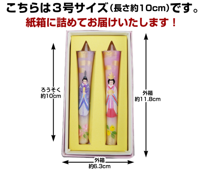 | 製品名: | おひなさま 特別柄 3号 絵ろうそく 2本入 桃の節句 15 |