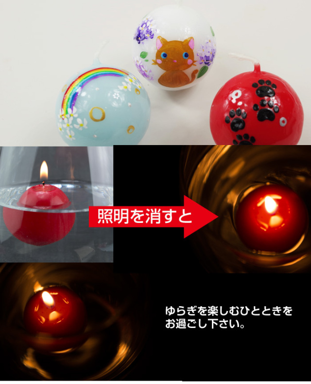 ガラスや陶器などの不燃性の器にお水を入れ、浮かべて灯して下さい。