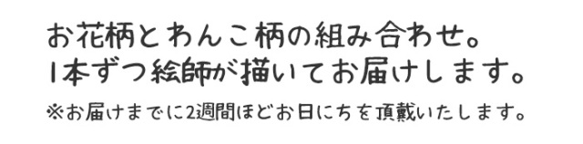 お好きなわんことお花の絵柄の組み合わせで描きます。