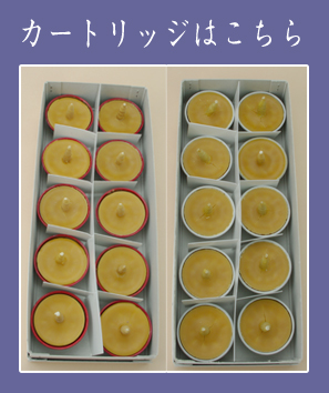 Topお寺様用ろうそく お寺様用 華恵香 お寺様用 カートリッジ式 和ろうそく 白 50号【華恵香】2本セット(本体) 価格: ¥18,700 (税抜 ¥17,000) [ポイント10倍中 1,870ポイント~] 販売期間: メーカー: (有)松本商店 型番: hanakeika_001 色: 選択してください 白 『のし』の種類: 選択してください のし不要 御供 御霊前 御佛前 粗供養 備考欄にて指示 『のし』の名入れ: 選択してください 名入れ不要 ご購入者の苗字 ご購入者様の下の名前 ご購入者様のフルネーム 備考欄にて指示 包装・のし指定: 御進物としてご利用のお客様は、包装・のし指定のご選択をお願いします。(無料です) 選択してください 包装のみ(¥0) 包装不要(¥0) のし/御供(内のし+包装):お客様の苗字(¥0) のし/御供(内のし+包装):お客様の下の名前(¥0) のし/御供(包装+外のし):お客様の苗字(¥0) のし/御供(包装+外のし):お客様の下の名前(¥0) のし/御仏前(内のし+包装):お客様の下の名前(¥0) のし/御仏前(包装+外のし):お客様の苗字(¥0) のし/御仏前(内のし+包装):お客様の苗字(¥0) のし/御仏前(包装+外のし):お客様の下の名前(¥0) 数量: 個 在庫: 14個 在庫 14個 色『のし』の種類『のし』の名入れ白のし不要名入れ不要ご購入者の苗字ご購入者様の下の名前ご購入者様のフルネーム備考欄にて指示御供名入れ不要ご購入者の苗字ご購入者様の下の名前ご購入者様のフルネーム備考欄にて指示御霊前名入れ不要ご購入者の苗字ご購入者様の下の名前ご購入者様のフルネーム備考欄にて指示御佛前名入れ不要ご購入者の苗字ご購入者様の下の名前ご購入者様のフルネーム備考欄にて指示粗供養名入れ不要ご購入者の苗字ご購入者様の下の名前ご購入者様のフルネーム備考欄にて指示備考欄にて指示名入れ不要ご購入者の苗字ご購入者様の下の名前ご購入者様のフルネーム備考欄にて指示 返品についての詳細はこちら 弊社は明治10年、大阪福島区にて創業以来、和ろうそくの製造一筋に現在に至っております。 当店はこのカートリッジ和ろうそく【華恵香】を通じて日本の伝統産業である和ろうそく、ひいてはこの原料である日本の伝統文化ハゼの実を絞った木蝋(もくろう)と米ぬかから絞ったぬか蝋の素晴らしさを御理解いただきたい気持ちと、そして各御寺院様から次世代の沢山の一般の方にもこの文化をお伝えして頂きたい気持ちでこの商品を開発いたしました。 皆様も良くご承知の通り、和ろうそくは、 1) 値段が高い、 2)見た目のススが多い3)芯切りなどが手間などの事情から使いやすく且つ安価なパラフィンローソクへ移行が激しいのが現状です。そのような流れの中でも「やっぱり植物蝋を使った和ろうそとくでないと」と おっしゃって頂ける各御寺院様から「2時間程の法要で値段も高価な和ろうそくを使い捨てるのはもったいない!頭だけ代えれるようなカートリッジ和ろうそくは出来ないか?」と云うご要望が随分前から多々ありました。 現在すでに「和ろうそく型」と云うパラフィンで出来たカートリッジろうそくは販売されております。 しかしながら純植物蝋を使ったさらに芯も昔ながらの灯心を使った純正カートリッジ和ろうそくは当店が初めてでございます。ぜひ一度このカートリッジ和ろうそく【華恵香】の灯りをご覧いただければ幸いです。 【華恵香】カートリッジ専用の本体です。 本体の上にカートリッジを置くだけで簡単にセットできます。 華恵香(本体) 箱入り数 2個入り サイズ 高さ:182mm 上部直径:60mm 下部直径:33mm 穴直径:7mm 素材他 鉄製 【華恵香】カートリッジ専用の本体です。本体の上に容器に入ったカートリッジを置くだけで簡単にセットできます。 ご使用上の 注意 ・ろうそくは燭台に充分固定し、火災予防上近くに燃え易いものを置かず、又人気のない所でのご使用はお止め下さい。 ・風の当たらない場所でご使用下さい。強い風が当たると油煙が上がり、蝋(ろう)が流れて完全燃焼を妨げます。 商品説明 カップろうそくを交換するだけのお手軽で経済的な和ろうそく。 商品仕様 製品名: お寺様用 カートリッジ式 和ろうそく50号 白 【華恵香】2本セット(本体) 型番: hanakeika_001 メーカー: (有)松本商店 華恵香(本体) 箱入り数 2個入り サイズ 高さ:182mm 上部直径:60mm 下部直径:33mm 穴直径:7mm 素材他 鉄製 【華恵香】カートリッジ専用の本体です。 本体の上に容器に入ったカートリッジを置くだけで簡単にセットできます。 ご使用上の 注意 ・ろうそくは燭台に充分固定し、火災予防上近くに燃え易いものを置かず、又人気のない所でのご使用はお止め下さい。 ・風の当たらない場所でご使用下さい。強い風が当たると油煙が上がり、蝋(ろう)が流れて完全燃焼を妨げます。